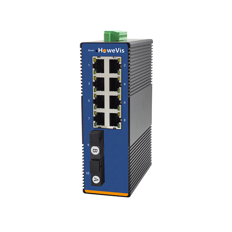 Web-managed Gigabit 2 optical and 8 electrical industrial Ethernet switches, supporting 8 10/100/1000Base-T downstream electrical ports and 2 1000Base-FX upstream optical ports. The product meets FCC, CE, and ROHS standards. This swtich has a working temperature of -40 ℃ to 85 ℃, and has strong robustness to adapt to various harsh environments. It can also be conveniently placed in a compact control box. The installation characteristics, wide temperature operation, and IP40 protection level shell and LED indicator light of the guide rail.The switch adopts a storage and forwarding method, combined with QoS technology, to ensure the effective allocation of bandwidth to each port, providing a reliable and convenient solution for the networking of Ethernet devices for users. It can be widely used in industrial scenarios such as smart transportation, rail transit, smart cities, smart factories, smart mines, and comprehensive energy with Ethernet access.